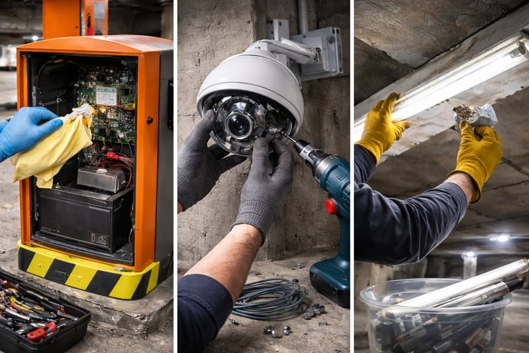 Videoseguridad, Control de accesos, Parkings, Antena, Fibra óptica, Datos, Racks, etc.